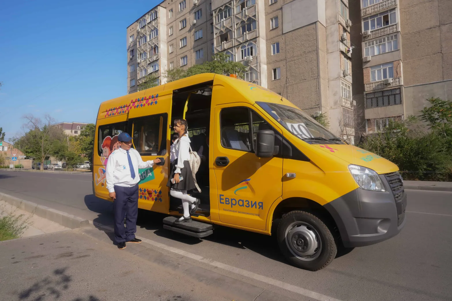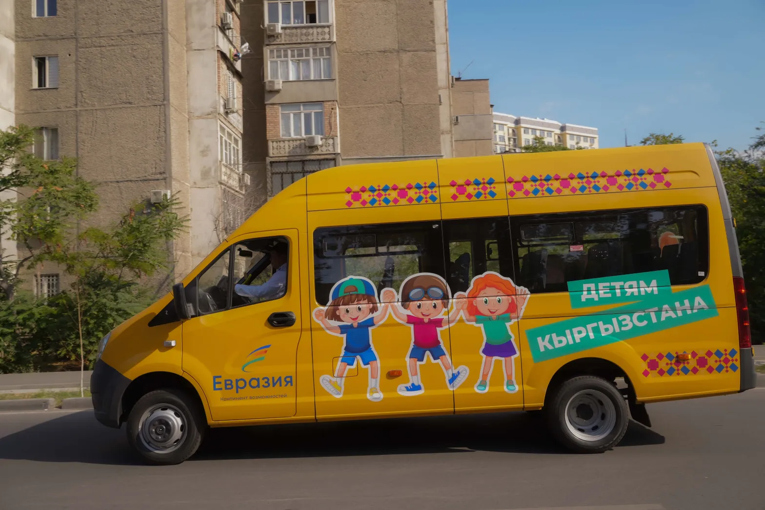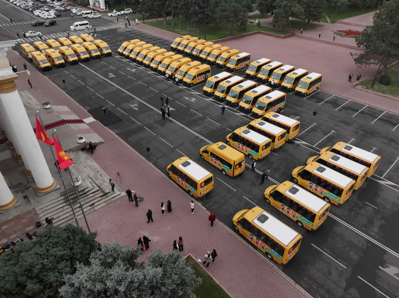 В рамках программы «Евразийский лицей» Кыргызская Республика получила 50 современных школьных автобусов от АНО «Евразия», приобретенных у компании ГК «Современные транспортные технологии». Автобусы предназначены для безопасных и комфортных поездок детей в удаленных районах Кыргызстана в школу и обратно.