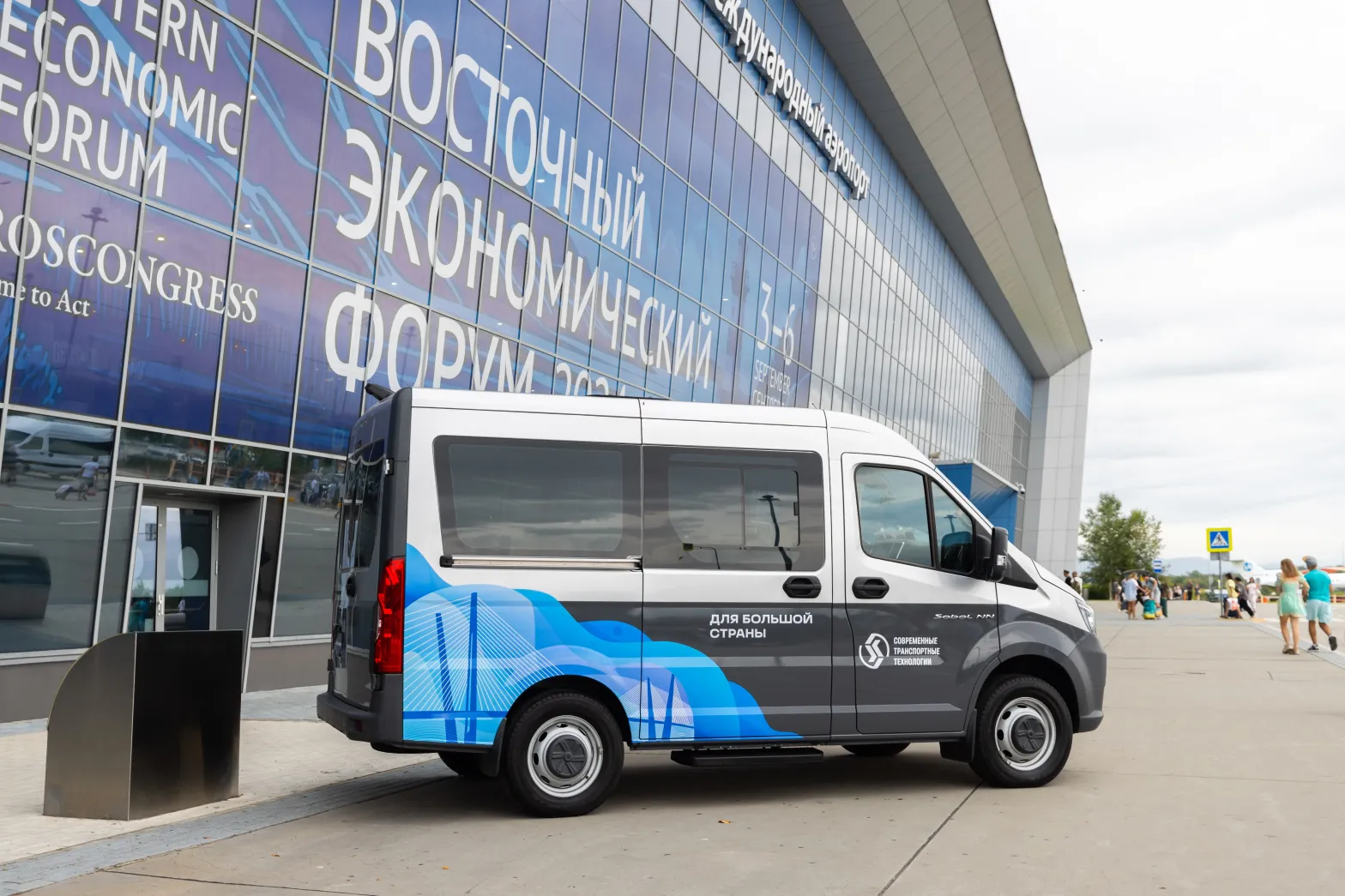 Социальное такси Соболь NN. Специализированный автобус, разработанный в рамках федерального проекта «Старшее поколение». Автомобиль предназначен для перевозки маломобильных граждан и оснащен электрическим подъемником для инвалидных кресел.
