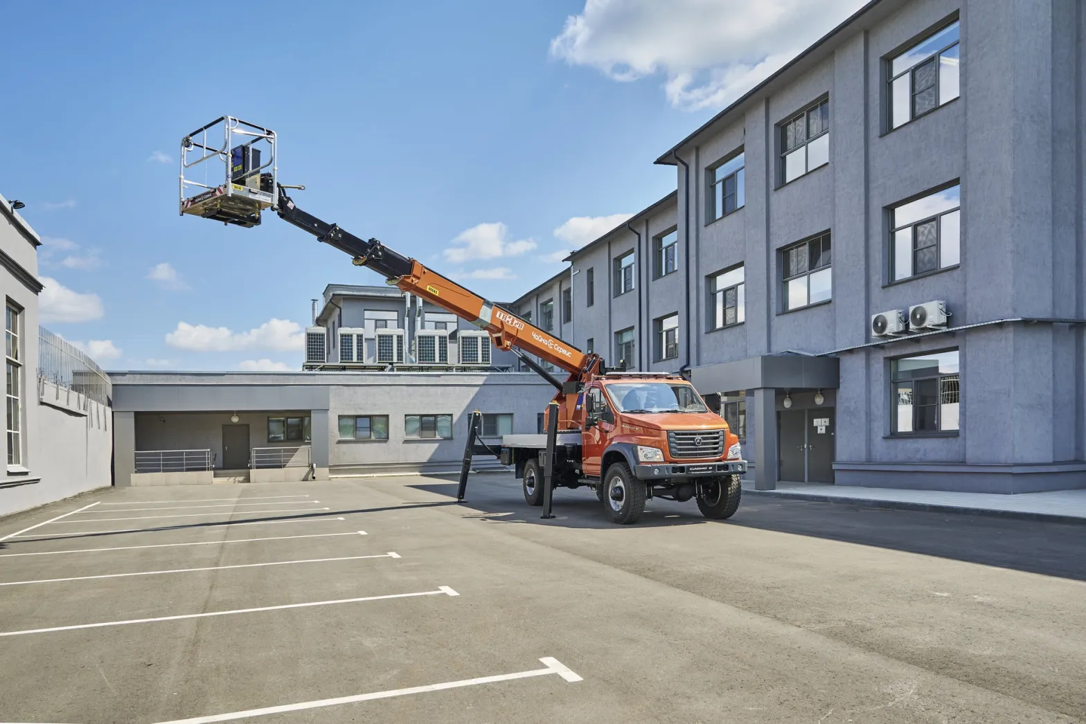 На демонстрационном экземпляре будет установлена телескопическая автовышка «Чайка TR328» — собственная разработка компании «Чайка-Сервис». Этот подъёмник обладает выдающимися характеристиками: рабочая высота подъёма составляет 28 метров, максимальный горизонтальный вылет — 18 метров, грузоподъёмность люльки — до 400 кг. Рабочая стрела может поворачиваться на 360 градусов, что обеспечивает полный круговой обзор и удобство работы даже в ограниченных пространствах. Благодаря такой комбинации характеристик автовышка становится незаменимым инструментом для высотных работ в различных сферах.